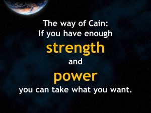 It is more likely that the name “Cain” described his character. Cain is the one with all the possessions (Gen. 4:10-24)! When his brother’s life gets in his way, he takes it. Cain teaches us, if you have enough strength and power you can take what you want. While Cain is cursed for his actions, he also receives the special protection of God. In addition, Cain acquires a land, a wife, then a son, and finally a city.
